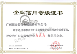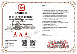 广东省3A企业信用等级证书