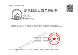 2021纳税信用 A 级荣誉 证书